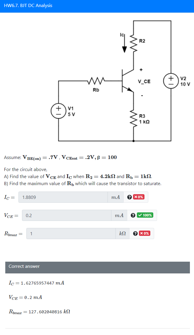 Solved Hw6 7 Bjt Dc Analysis R2 V Ce V2 10 V Rb V1 5 V R3 Chegg Com
